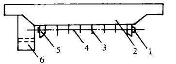 1 - 螺母;2 - 主梁;3 - 吊梁;4 - 拉桿;5 - 支架;6 - 司機室